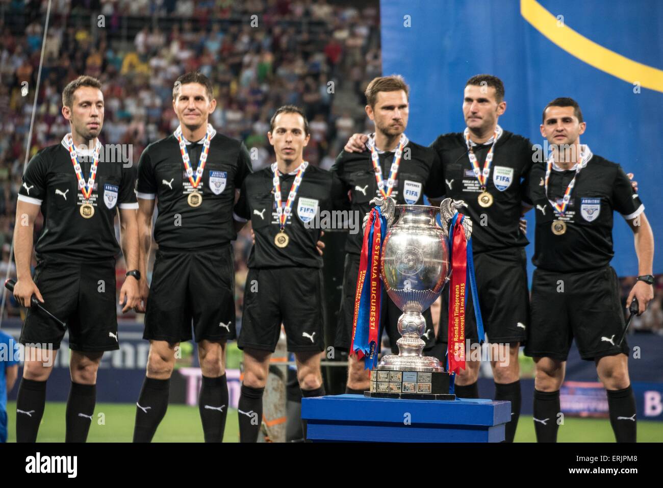 Nationalen Arena Bukarest Rumanien Rou 31 Mai 2015 Das Schiedsrichter Team Am Ende Des Finals Cupa Romaniei Timisoreana 2014 2015 Rumanien Timisoreana Pokalfinale Spiel Zwischen Fc Universitatea Cluj Rou Und Fc Steaua Bukarest Rou